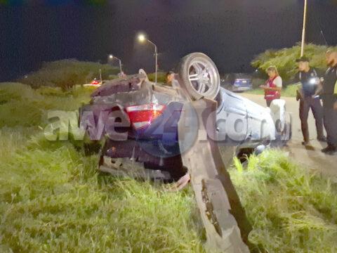 [VIDEO] Auto cu tabata wordo lastra a los perde control dal na e piedranan y bolter pariba di e brug