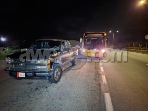 Accidente entre un pick-up hancho y un bus di Arubus, e caminda no ta suficiente hancho pa nan 2