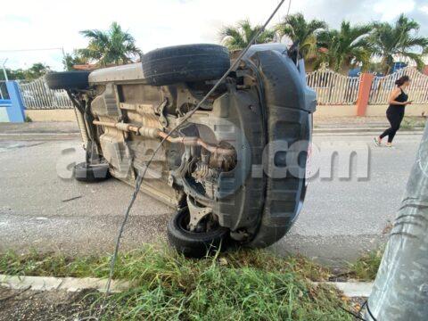 Chauffeur a perde control subi 2 bari y a keda pega riba nan na Sero Biento
