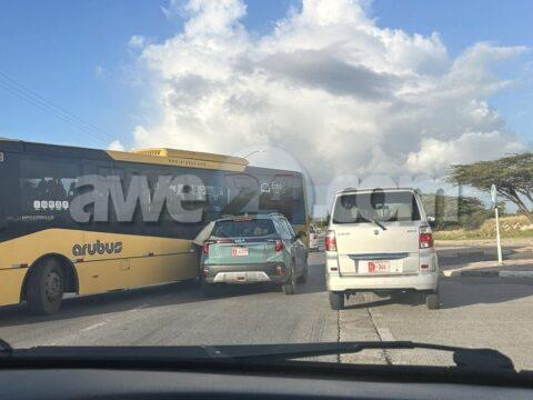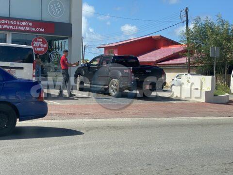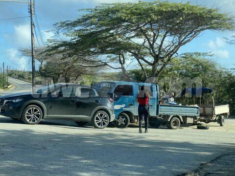 Accidente ora cu chauffeur di un auto a reverse y a bay dal na un truck di deliver na Save More na Bubali
