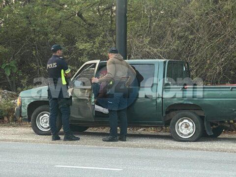 Polis a bay pa un Pick-up cendi para banda di caminda cu chauffeur drumi