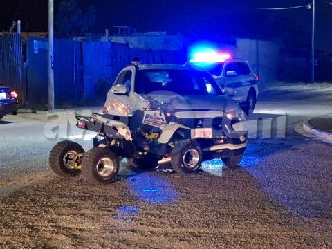 Accidente cu impacto fuerte entre un auto y un quadracer na Simeon Antonio, e motociclista a resulta herida.