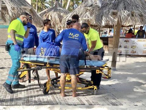Polis y ambulans a bay cu urgencia na e basketballveld na Nijhoffstraat pa un persona cu 3 hinca y gravemente herida