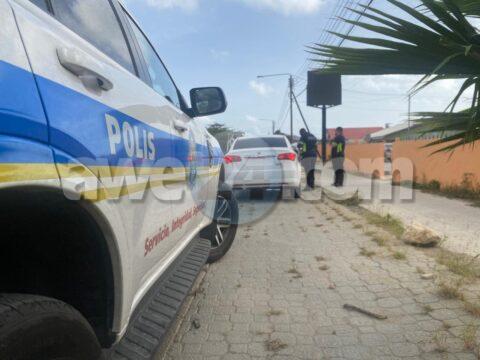 Polis a para auto coriendo zigzag riba caminda na Savaneta