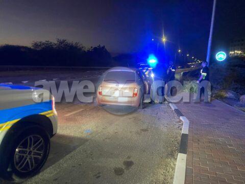 Pariba di rotonde airport polis a logra para Nissan March cu lo a dal palo di lus na Camacuri