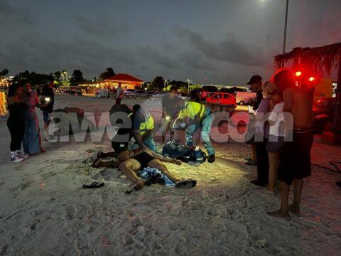 Ambulans a bay cu urgencia pa Surfside pa un turista cu a bira malo na e strand.