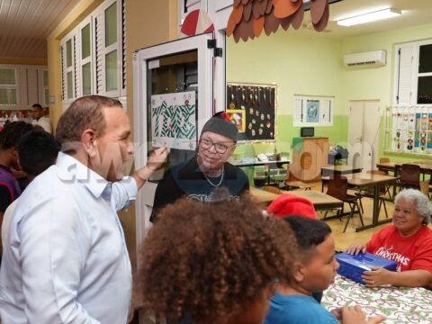 ORANJESTAD: Diabierna ultimo, Minister di Enseñansa y Deporte Endy Croes a bishita scol basico St. Paulus School na San Nicolas, unda cu nan tabata celebrado…