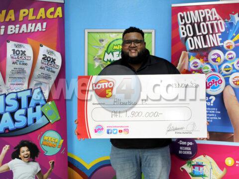 E feliz ganado di 1 miyon 900 mil florin cu Lotto 5 a cobra su premio!