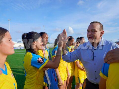 Minister Endy Croes: DESPUES DI 12 AÑA WEGA CLASIFICATORIO CONCACAF W GOLD CUP DI SELECCION NACIONAL FEMENINO A TUMA LUGA NA ARUBA Aruba ta gana Boneiro cu e score di 5-0 na Compleho Deportivo Guillermo Prospero Trinidad.