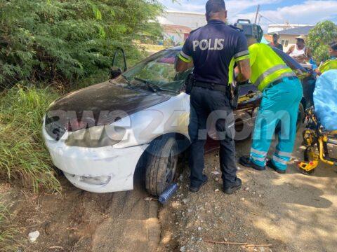 Diabierna atardi a drenta informe di cu un auto lo a dal un palo di lus riba e brug pabao di Weng Kee na Piedra…