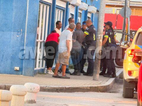 Diadomingo birando mainta polis pasando na Sasakiweg a bin topa cu un auto pega na e drempel y un dama y un caballero ta discuti….
