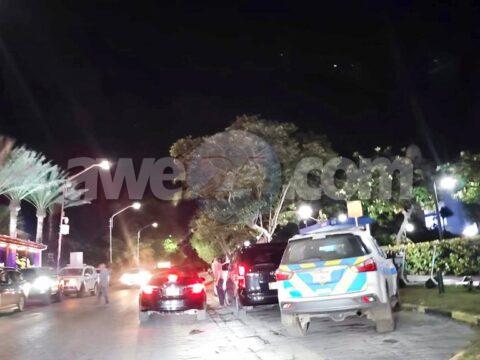 Atrobe a los tiro riba un Nissan March, e biaha aki dilanti club nocturno na Palm Beach, polis a para un auto cu 4 sospechoso!