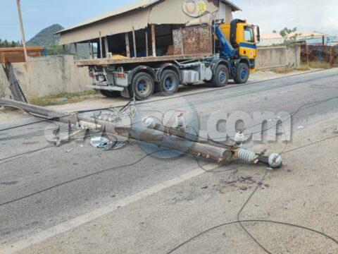 [VIDEO] Coriente a bay na Papilon pasobra un truck a slip ranca un palo di lus completo