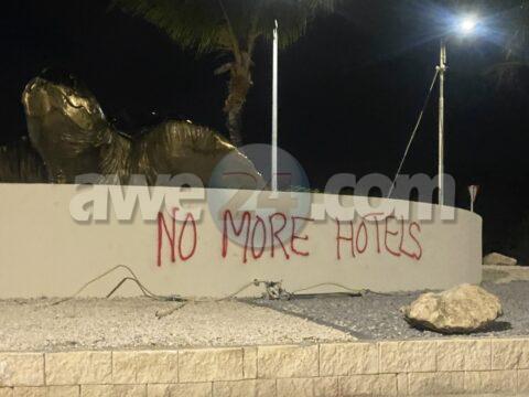 Desconocidonan a comete destruccion scirbiendo mensahe “NO MORE HOTELS” cu esaki ta causa daño na nos imagen turistico. Mirando cu tin camara di seguridad den…