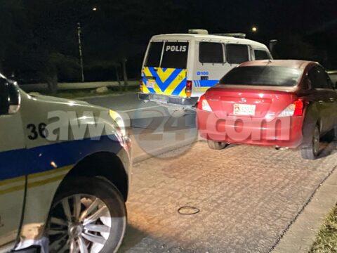 Diabierna madruga durante patruya riba Sasakiweg polisnan atento di distrito 2 a topa cu un Nissan Versa para banda di caminda poco pabao di Guardian…