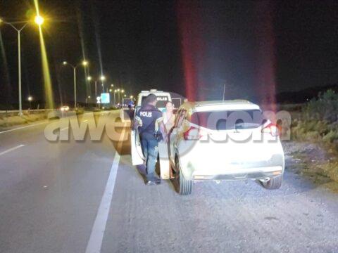 Polis a bay Solito pa un homber burachi canando zig zag riba caminda bahando autonan