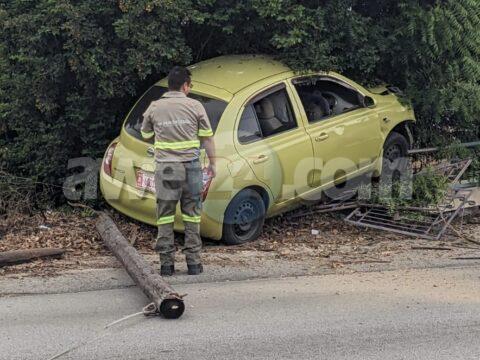 [VIDEO] Dama chauffeur a bira malo tras di stuur baha caminda ranca un palo di sosten di palo di lus