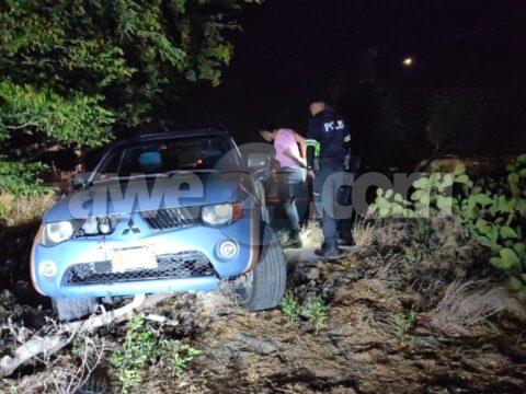 Diasabra madruga a polis atento durante su patruya a topa cu un Toyota Tercel blanco cu lus sendi banda di e veld di Riverplate na…