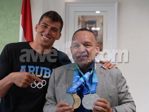 Mikel Schreuders a conkista 1 medaya di oro y 3 medaya di plata. ORANJESTAD:Diasabra atardi, Minister Endy Croes a topa cu e atleta Mikel Schreuders…