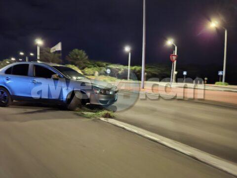 Chauffeur no a logra controla su auto na rotonde Mahuma y a bay dal na e rand di acera