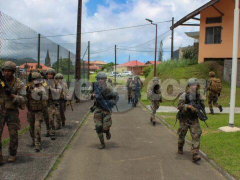 Durante e ehercicio Tchembe, Martinique fictivamente a ser asota pa un temblor y varios gangnan arma a apodera di e isla. E mariniernan hulandes mester…