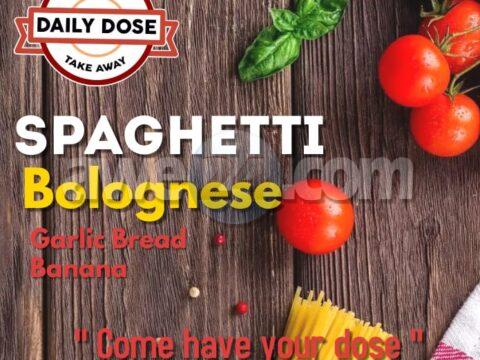 Daily Dose tur dia tin un plato special, pa awe 28 di April tin Spaghetti Bolognese cu Garlic Bread y Banana, pa order yama 7418555….