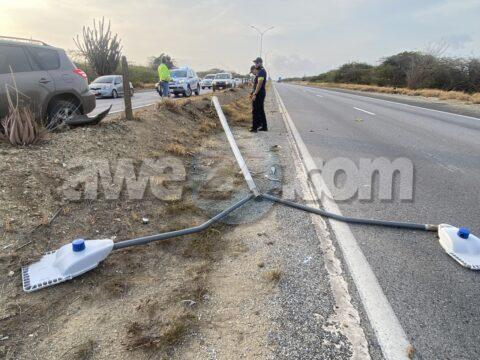Motociclista coriendo velocidad halto a accidenta na e rotonde Bushiri riba E.J.”Watty” Vos blvd.