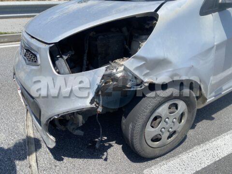 Chauffeur a desvia pa un auto no dal e ela perde control baha caminda y cay den e median