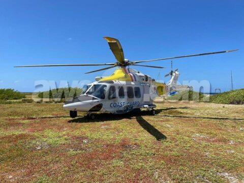 Helicopter di Guarda Costa a bay Klein Curaçao pa un dama turista cu a bira malo