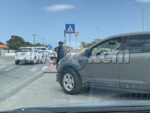 Diamars mainta polisnan di distrito 2 a tene un control den trafico pariba di e rotonde Tanki Flip, varios auto cu a bira sali for…