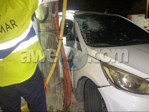 [VIDEO] Caminda muha y chauffeur a perde control bay dal banda di pasahero riba palo di lus y lag’e herida