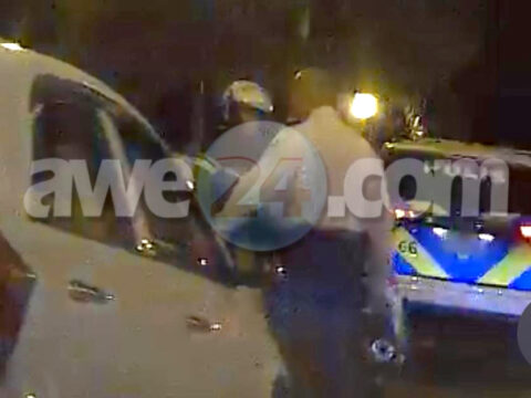 [VIDEO] Polis y ambulans a bay Catiri pa un caso di maltrato di pareha, e golpi tabata den cara!